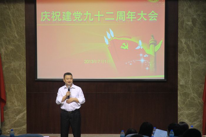 党总支书记李笑非副校长发表了热情洋溢的讲话,她回顾了伟大的中国共产党92年不平凡的历程。中国共产党92年的百折不挠,就是为追逐实现中华民族的独立、解放、繁荣,为中国人民的自由、民主、幸福而不懈奋斗的强国梦;中国共产党92年的风雨兼程,就是为追逐人民生活水平不断提高、社会和谐稳定、中华民族以崭新的姿态重新屹立于世界民族之林的改革梦;中国共产党92年的锲而不舍,就是为追逐经济迅猛增长、国际影响力迅速增强、国家实力日渐强大的和平崛起梦。芦山地震,众志成城;神十上天,太空授课,蛟龙入海,彰显强盛;面对国际国同内复杂的形势,中国共产党平稳掌舵,从容应对,充分展示了我党的自信与实力,充分展示了中华民族复兴道路上的进取与稳健。