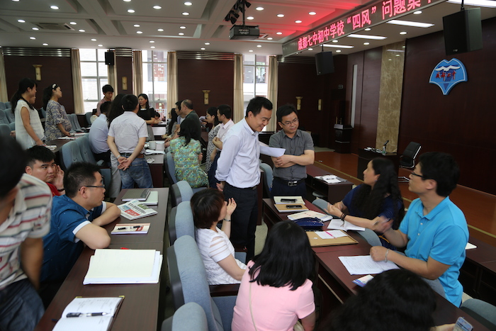 成都七中初中学校“四风”问题集中整治活动讨论现场