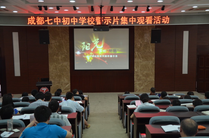为进一步推进校园廉政文化建设,强化教师的廉洁自律意识,结合党的群众路线教育实践活动,6月17日下午,学校组织全体教职工集中观看了警示教育片《阳光下的黑幕》,此次活动由李笑非校长主持。