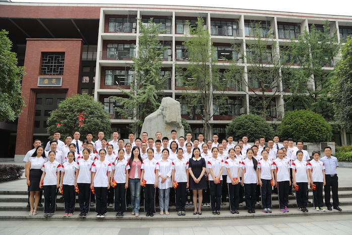 陪伴我们走过这一神圣时刻的有共青团四川省委张征书记,少年部安玲部长,高新区团工委副书记冉启平,还有初2016届全体老师、学校领导和家长代表。