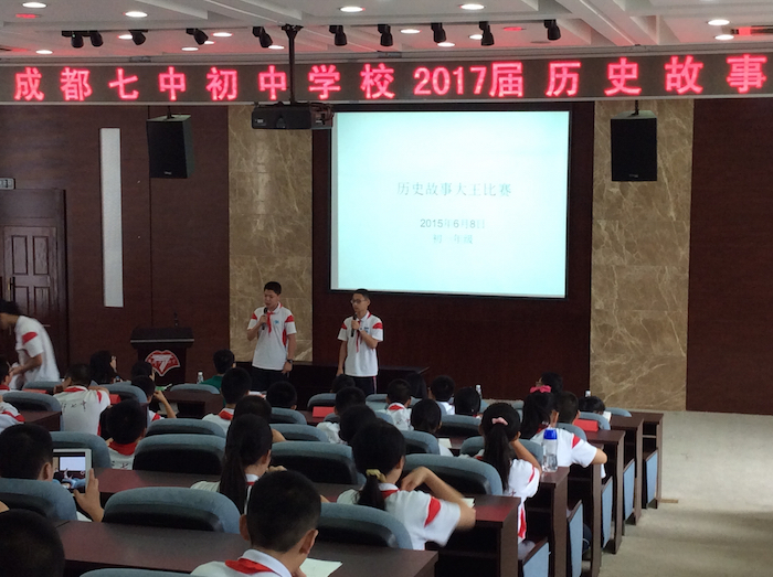 最终初一八班的梁思睿同学获得了本届的“历史故事大王”称号,得到了精美历史书籍。