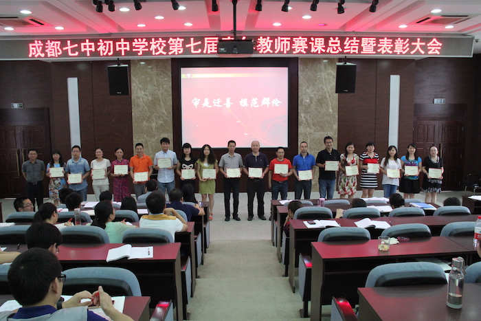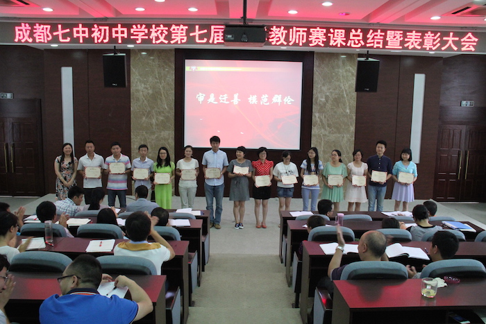 接下来,张新民副校长宣读了表彰决定。本次评选本着培养教师专业素养、提高教学经验、建设具有高素质的教学队伍、促进学校的全面发展的要求,经学校组织召开评委会认真评审,最终评选出29节优秀献课,其中,一等奖15名,二等奖14名;对2015届中考模拟试题命制比赛认真评选,最终评选出36份优秀试题,其中,一等奖21名,二等奖15名。并对获奖老师进行了简短而隆重的现场颁奖活动。获奖的青年教师向颖老师、帅建明老师做为代表给大家分享了赛课过程的心路历程及收获。