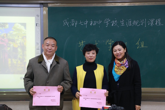 李校长为艺术学1组的专家家长颁发课程指导聘书