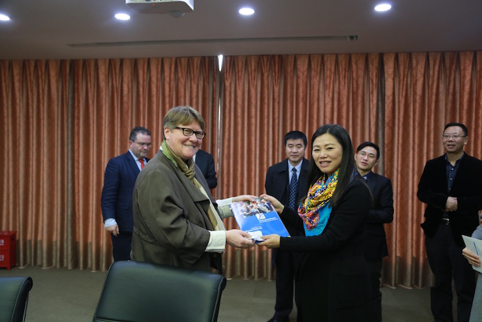 比利时布鲁塞尔中学校长向李校长赠送礼物