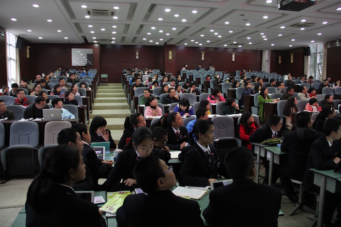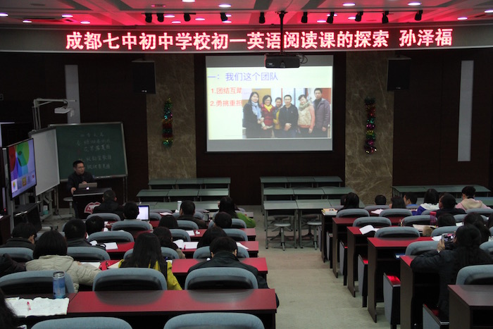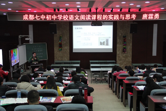 2015年12月8日,“成都七中初中学校阅读课实践与探索研讨活动”在学校学术一厅开展,活动由教学管理部王岚主任主持。