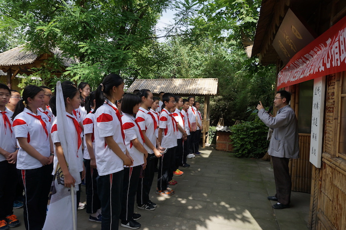 园长先生先发话,他衣着朴素,着一袭灰衣棕裤,是中国传统的模样。他面容慈祥,又不失威严之正气。他声如洪钟,却又压抑不住语言的激动与赞扬。“天地之间,今天我们得以欢聚一堂,这就是人性的光芒了……感谢你们,成都七中初中2018届10班全体师生!”全场自豪的鼓掌声,与悠悠鸟鸣相得映衬。