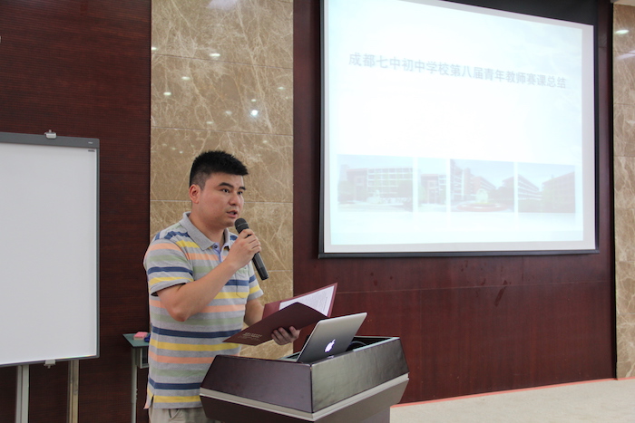 表彰开始前,教学管理部欧阳主任从以下方面对本届青年教师赛课活动进行了总结:一、赛课活动亮点纷呈:新技术与课堂深度融合紧密,如数学几何画板的运用、英语盒子鱼的使用、语文quip软件的开发、生物APP的创新等;二、赛课活动组织良好:教学管理部及时收集、整理赛课老师的学习卡、助学案、微视频等资料,为后续子课题的研究保存了重要的过程性资料。三、成果与收获:在本次赛课活动中,老师们将赛课作为研究的课例,不仅提升了教师的专业素养,而且对各科核心素养的培养也更加深入。