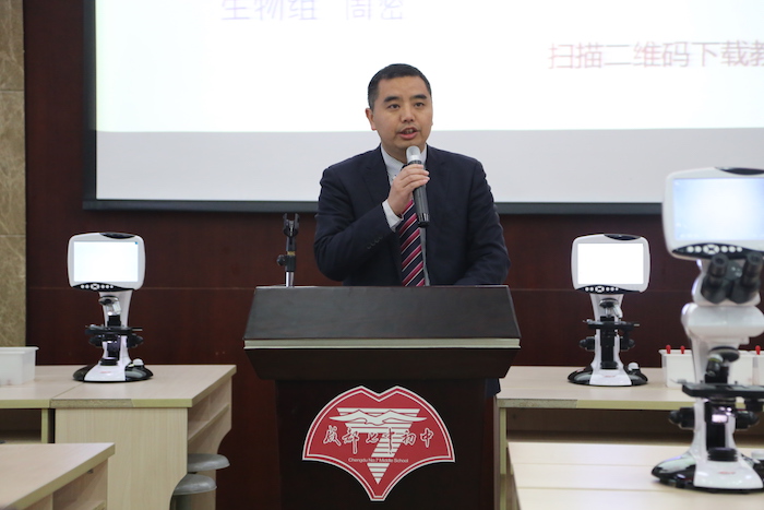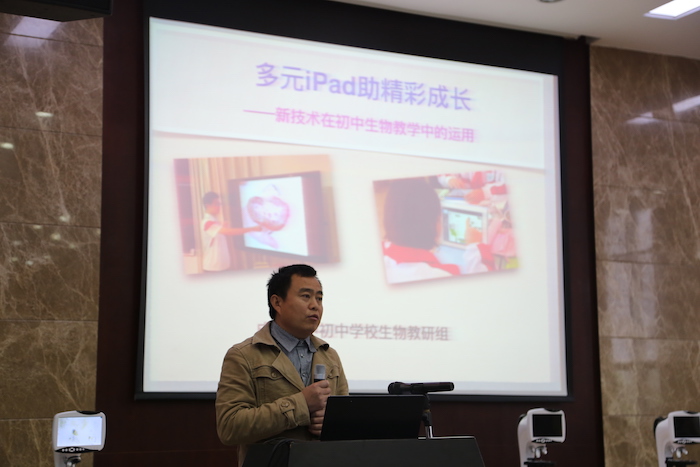 接下来,我校生物组吴旭光、姜文思和陈瑜老师进行了主题发言,从不同角度展示了信息技术与我校生物课堂教学深度融合的实践探索情况。长期与我校联合教研的华阳中学教师代表徐光德老师,特邀的人大附中辇伟峰老师,也进行了相关主题发言。各位老师建立在学科教学实践上的探索与创新,受到了与会人员的一致好评。
