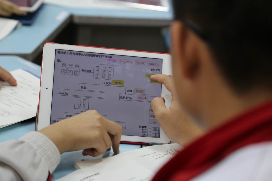 首先,工作室全体人员观察了陈月科老师的现场课《化肥的鉴别》。陈老师以微课《化肥及其作用》引入,引发学生产生疑问“如何区分开氮肥、磷肥和钾肥呢”。在陈老师引导下,同学们反复阅读教材,在多次讨论的基础上设计出一系列探究实验,并动手实验来验证自己的猜想。观点在同学们激烈的讨论中不断完善,化学学习兴趣与探究实验能力在严谨的实验中不断提升。实验完毕后,同学们交流实验方法与实验的心得,在交流中进一步内化和升华本课的内容、方法和思想。