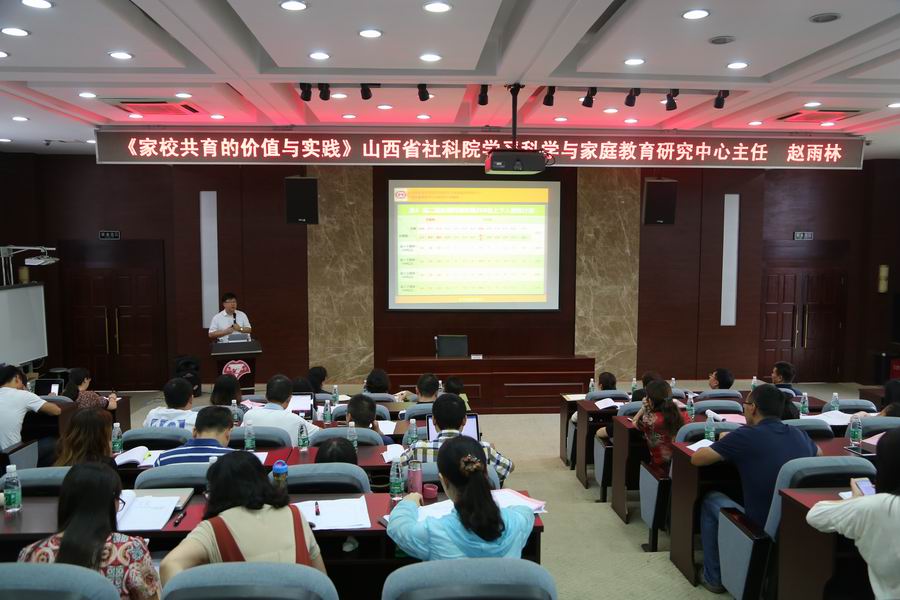 8月25日上午,山西省社会科学院学习科学与家庭教育研究中心主任、全国知名的家校共育专家赵雨林老师给全校班主任作了一场主题为《家校共育价值与实践》的专题讲座。赵老师指出现代家庭教育的目标是:提供学生获得发展的最大机会,深刻解读了他一直倡导的“双赢”教育理念。讲座分为三个部分:一、中国家庭教育现状及反思;二、发展家庭教育的时代背景;三、家庭教育的基本原理与技巧。赵老师精致的图表、生动的案例、愉悦的互动让老师们参与激情高涨。