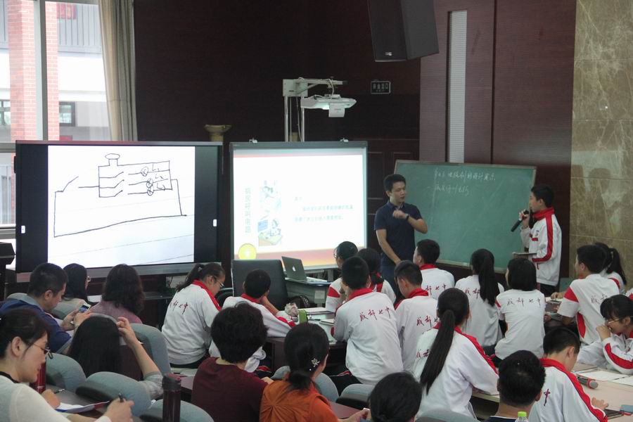 欧林阳老师的“电路创新设计”物理展示课从生活中选材,引领学生指出生活中常用电器的弊端,并激励学生深入思考、勇于尝试。在思维的碰撞中,课堂上诞生出了一个又一个方便实用的“新型电器小发明”:有坏掉几个灯泡仍能正常工作的“新型节日小彩灯”,有简易而实用的“病人呼叫系统”,以及能够提醒司机车门未关的警醒装置......