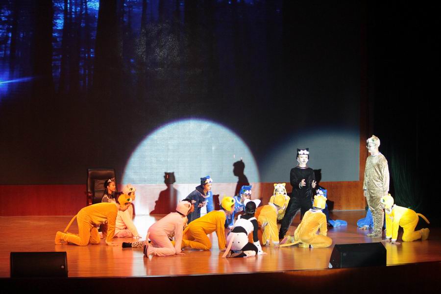 主持人的双语介绍拉开比赛的帷幕。首先出场的是8班,经典音乐剧改编的《CAT》。精选的重点剧情使我们感受到它的魅力,从头到尾贯穿的音乐更是令人震撼,一曲经典“Memory”也让我们久久不能忘怀。