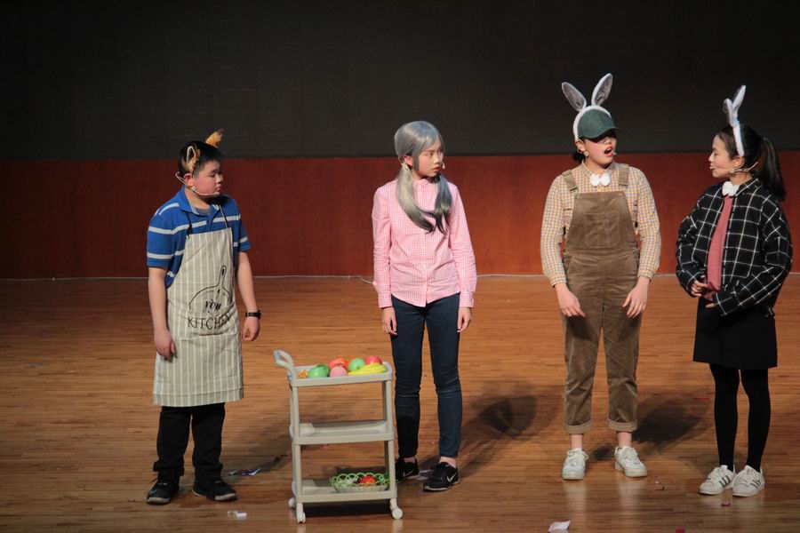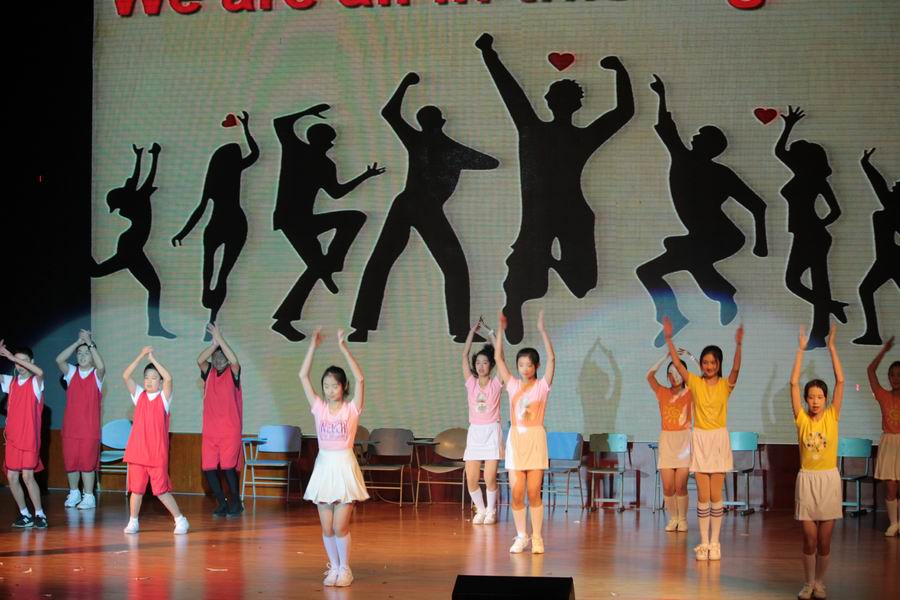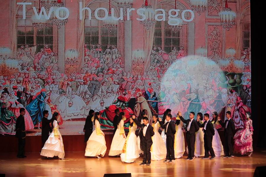在繁忙的学习中丰富同学们的课余活动,在活动中锻炼着同学们的英语口语表达能力和团队合作能力。各班演出的成功都是挤时间练出来的,如果没有坚持,何来成功。
