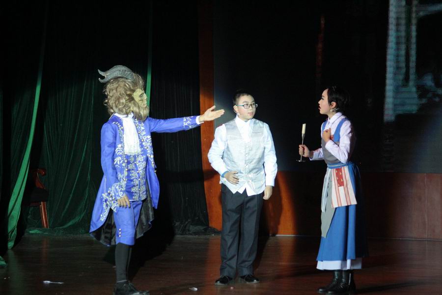 10班表演的《美女与野兽》更是让我们赞叹不已。服装的精美程度不亚于原剧。充满自信的口语为他们增色不少。