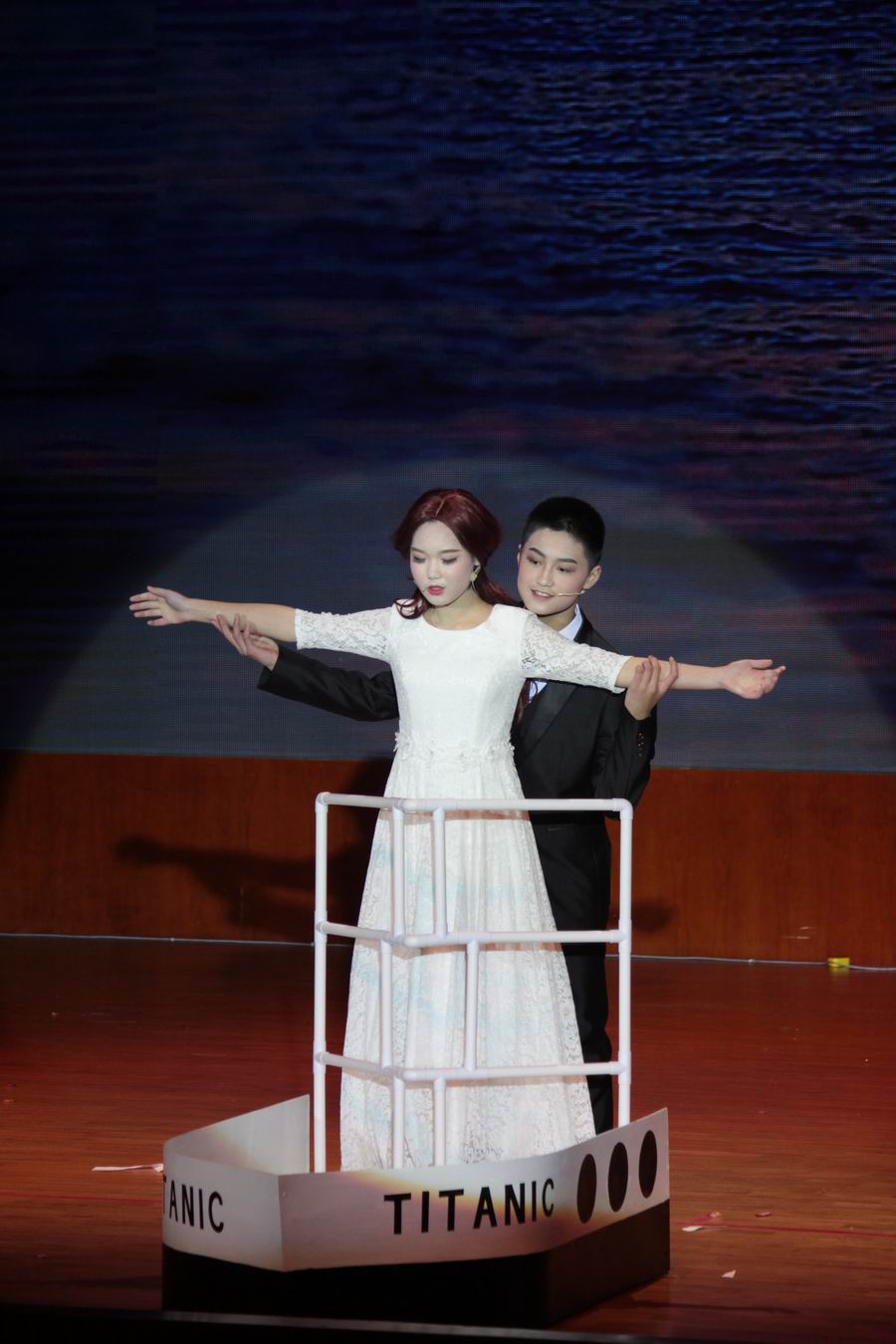 9班同学致敬经典《泰坦尼克号》获得同学们的欢呼,令人激动的情节加上同学们的倾情投入,效果相当好。