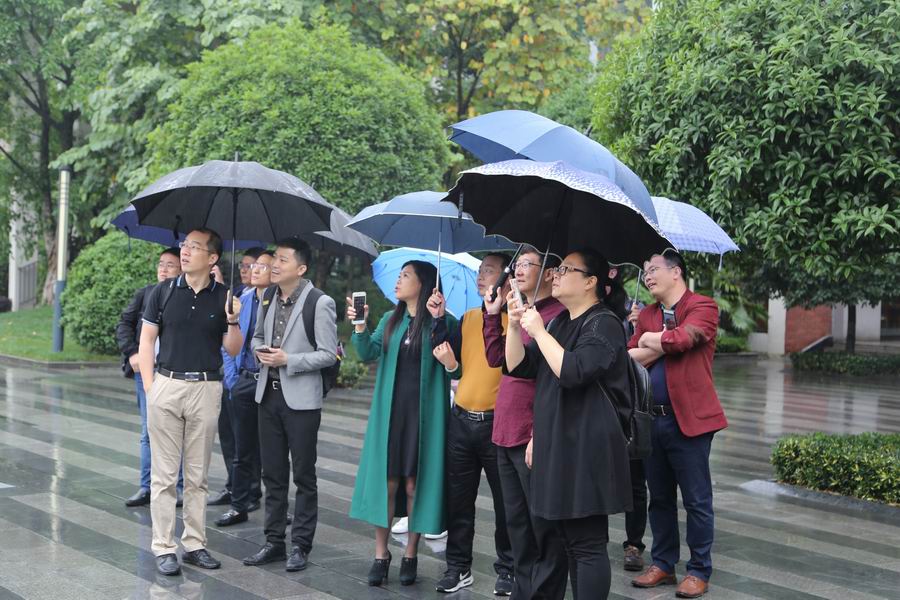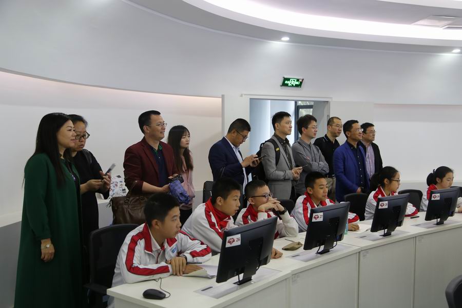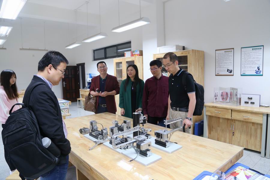 教育管理名家培养对象一行首先参观了学校校园。校训石—团队活动室—多媒体创意设计教室—金融实验室—教学楼大厅—图书馆—音乐厅—银杏大道—3D打印教室—精工实验室—机器人教室—心理关护中心。李校长每到学校一处功能室都就学生培养方面给来宾做了较为详细的介绍,他们都对学校对学生全面发展和个性发展大加赞赏,说到学校建筑风格独特,校园环境优美,教育理念先进,育人空间多元。