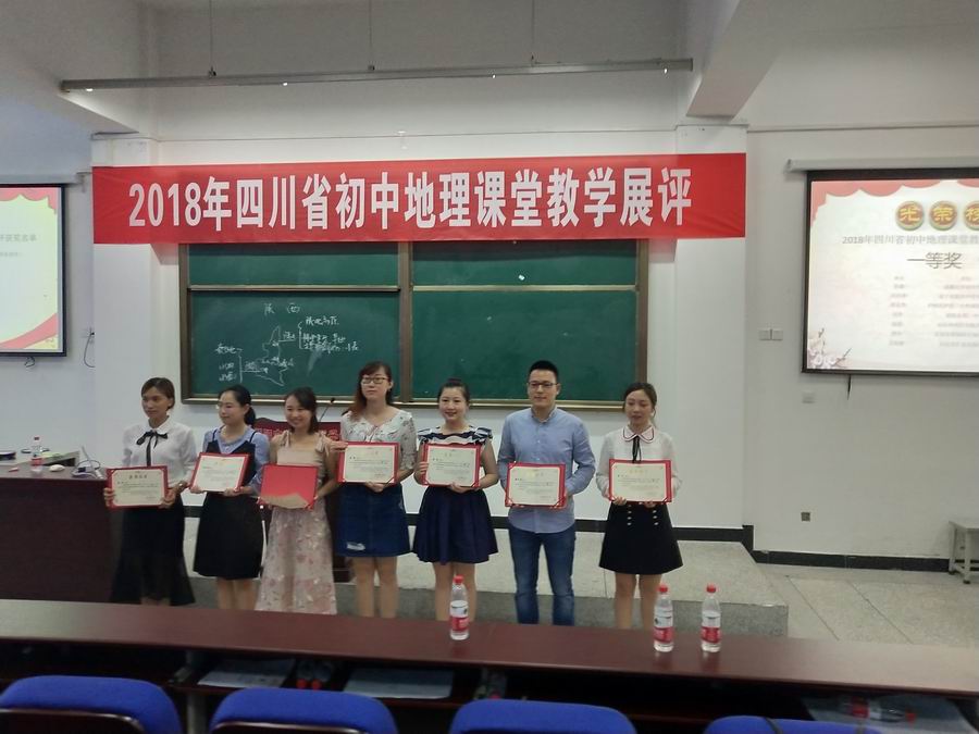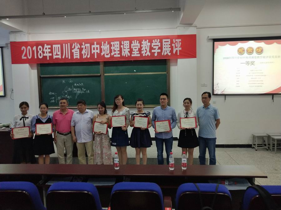 2018年4月18日,由四川省教科院组织的2018年四川省初中地理课堂教学展评大赛在郫都区岷阳实验外国语学校拉开帷幕,经过3天时间的激烈角逐,我校地理组蔡璐老师最终从全省22名参赛选手中脱颖而出,以一等奖第一名的好成绩夺取桂冠。并代表获奖选手进行了现场课展示。