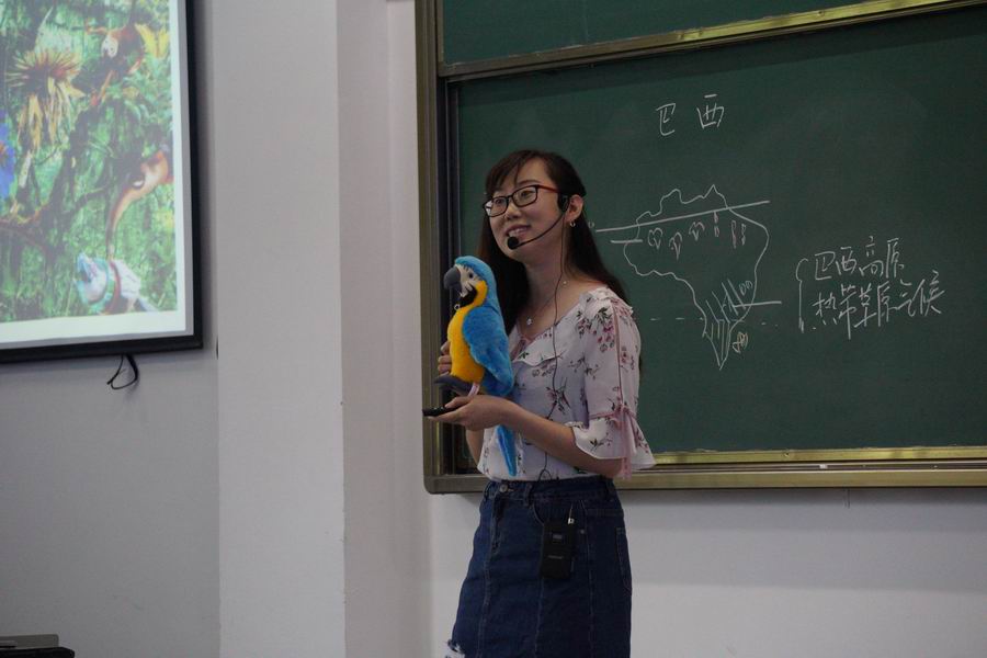 蔡璐老师的《巴西》一课别出心裁,紧紧围绕课标“运用地图和其他资料,联系某国家自然条件特点,简要分析该国因地制宜发展经济的实例。”以学生熟悉的“里约大冒险”作为情景主线,运用布鲁玩偶作为导游,以两种风格的语言灵活切换,通过丰富多样的道具和系统完整的活动设计,充分激发了学生兴趣,真正做到了教学中的“情、理、趣”融合。整节课设计充分体现了以学生为主体的教学理念,创生了学生思维,正是蔡璐老师别具一格的教学设计,精练优美的教学语言,亲切活泼的授课风格以及优秀的专业素质共同造就了这一堂堪称完美的微格课。
