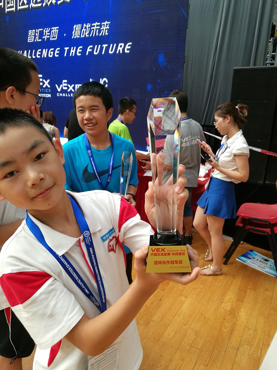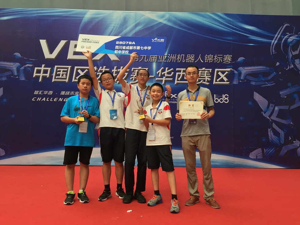 本次比赛汇集了来自西南地区和西北地区(四川、云南、贵州、西藏、重庆、陕西、河南、甘肃、宁夏、青海、新疆)的166支优秀队伍、共计800余名学生参赛。我校派出了4名优秀的选手组成了一支七初最强战队参加了VEX IQ项目的比赛。在比赛中,同学们沉着冷静,不骄不躁,在对手强大的攻势下,没有退缩,迎难而上,与队友商讨战术和策略,稳定发挥,最终收获了优异的成绩。当然,成绩的获得,与自身的努力和辛苦的付出是分不开的。在学校的大力支持下,参赛学生和指导老师顶着炎炎夏日,进行了为期15天的集中训练。在训练中,同学们不断的发现问题、改进机器人结构、修改程序,成绩也一点一点的往上升,正是因为平时的刻苦训练才换来了今天的优异成绩。俗话说:台上三分钟,台下十年功!只有付出了汗水,才能换来舞台上的精彩绽放!十年砥砺,七初荣耀!希望同学们戒骄戒躁,在接下来的全国赛和世锦赛中再接再厉!再创辉煌!为七初十年献礼!再次祝贺以上获奖同学,感谢学校领导的关心和鼓励!感谢班主任曹登勇老师和张玲老师的大力支持!