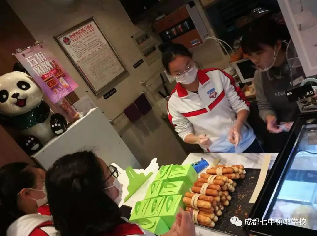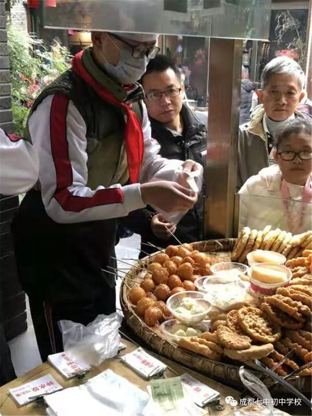 除此之外,4班同学还在宽窄巷子制作糖油果子,售卖美食,感受成都小吃、美食文化的传承。