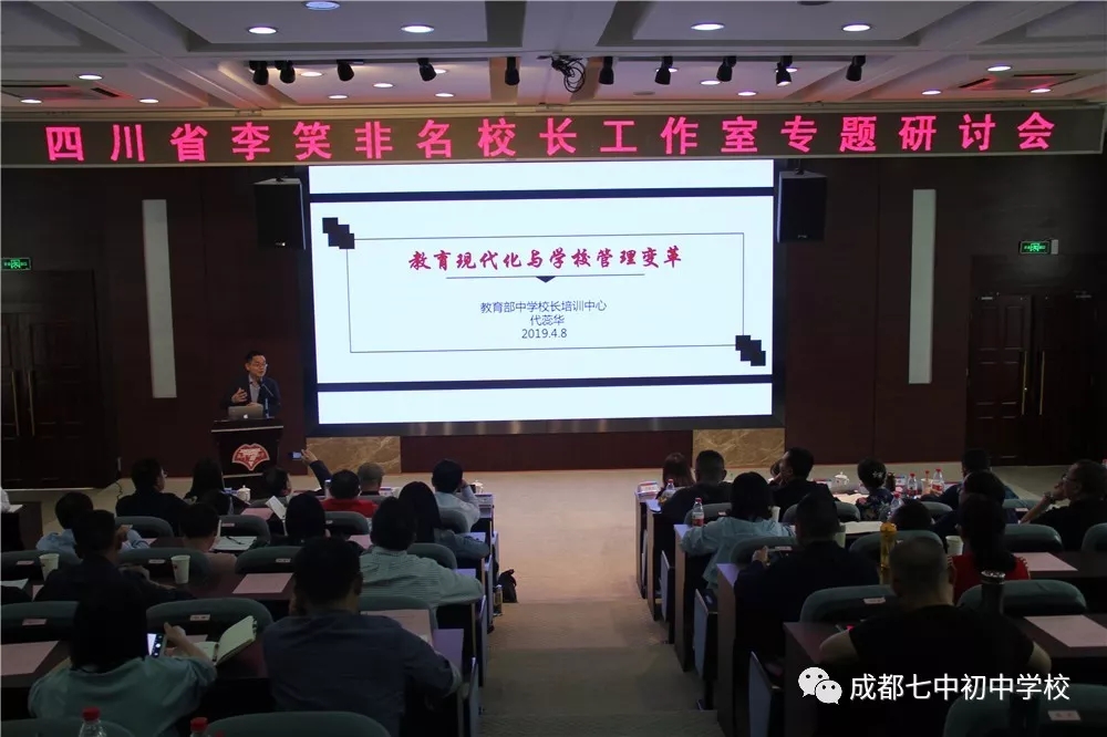此次研讨会的一个重要部分是由四川省李笑非名校长工作室导师、教育部中学校长培训中心代蕊华主任带来的《教育现代化与学校管理变革》专题讲座。代主任首先根据《中国教育现代化2035》提出的历史背景和现实意义,指出教育的“现代化、信息化、国际化”,并从“教育现代化划时代的重要意义”、“ 教育现代化需要教育治理现代化”、“教育治理现代化呼唤管理变革”三方面给校长们以高屋建瓴的指导。代蕊华主任的讲座既有宏观角度对国家教育发展规划的解读,又有细微处对教育参与和治理的期待,深刻体现了人本主义思想、多元发展思维、民主与法治要求,为参会校长指明了现代学校管理的变革方向和基本路径,意义重大。专家讲座环节由汪桂琼所长主持。