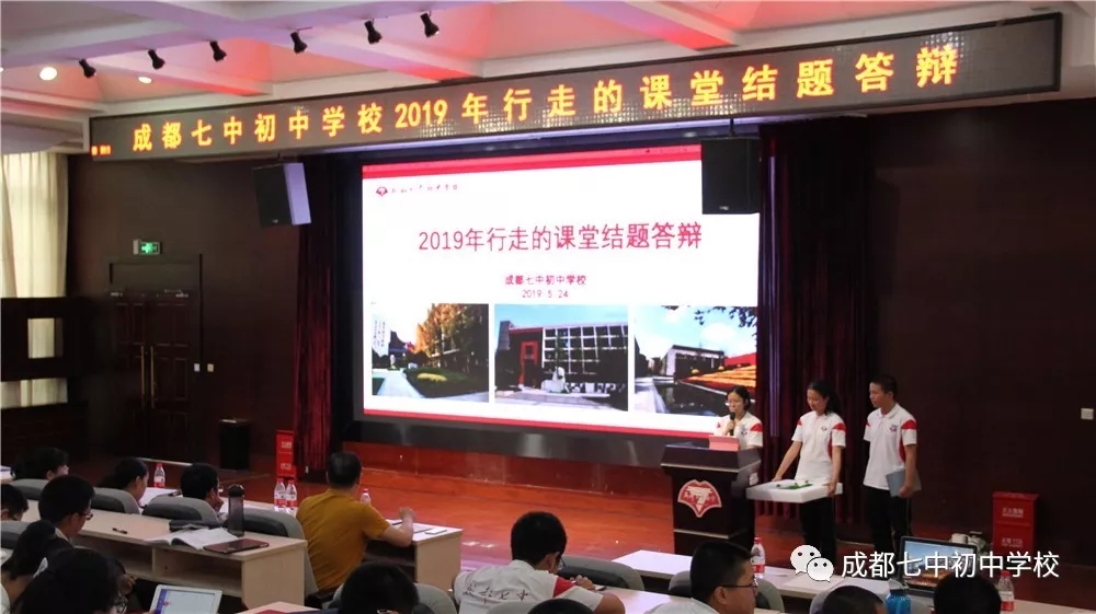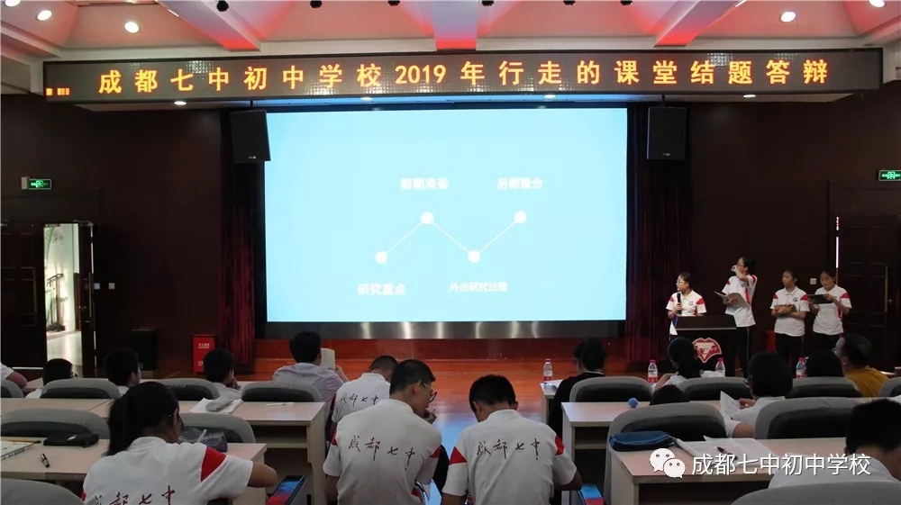 沐浴夏日“和煦”的阳光,呼吸自然清新的空气。成都七中初中学校2018-2019学年研学旅行课程——“行走的课堂”研究性课题结题答辩会如期拉开帷幕。在行走的课堂实践研究过程中,同学们打破学习的时空限制,在参与体验中格物致知,发现问题,探究问题,解决问题。整个结题答辩会精彩纷呈,四个答辩分会场不时爆发出热烈的掌声。