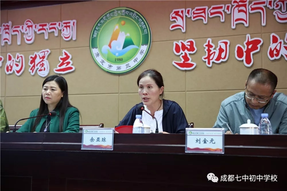 研讨活动的第二个部分是四川省李笑非名校长工作室专题研讨活动。康定市委常委、工会主席余亚琼在致辞中表达了对李笑非名校长工作室来到美丽康定表示欢迎,同时也对李笑非校长及工作室成员对康定教育所做的帮助表示衷心感谢。活动启动仪式上成都七中初中学校还向康定市第三中学、九龙县沙坪中学赠送了图书。