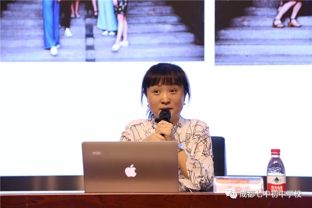 接着,李笑非校长为在座教师作了题为《我们追寻的教育》的讲座。李校长从成都七中的精神、成都七中的教师和学生,以及成都七中的教育引出“七初是什么”的问题,指出教育最困难的不是发明一种想法,而是将一种观念种入人心。谈到七初的教育特别注重学生素养的提升,聚集学生生命的成长,培养学生的健全人格与社会担当。李校长从七初的教师形象、学生特质以及学校“是范”课程建设等方面呈现了成都七中初中学校追寻的教育。给在座教师一个鲜明而立体的“七初教育”印象。