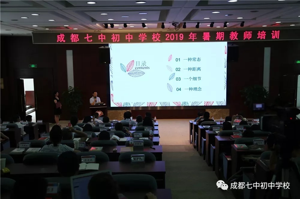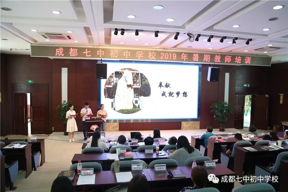 7月17日,成都七中初中学校2019新教师培训大会在学校学术一厅拉开帷幕,此次培训为期五天。成都高新区社区发展治理和社会事业局彭涌局长、匡世联副局长、成都高新区教育发展中心李建萍主任、成都七中初中学校李笑非校长、邱兴华副校长、王岚副校长、石敏副校长及学校全体中层干部等参加了此次培训大会的开幕仪式及培训活动。