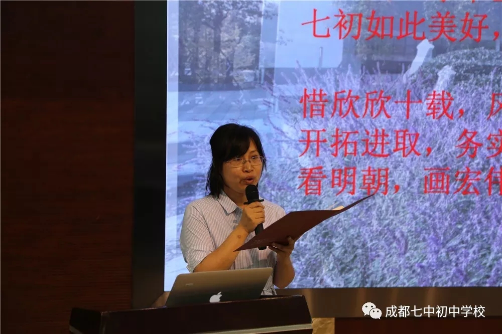 彭涌局长在讲话中用“十年磨一剑”来概括成都七中初中学校十一年来的发展,高度赞扬了七初在传承成都七中的文脉中形成的办学特色,以及高位运行的态势。彭局长在讲话中对在座的教师表达了殷切的希望,希望老师们在新的历程中,养成学习的自觉性,着力提升专业技能,共同营造浓厚的学习氛围。