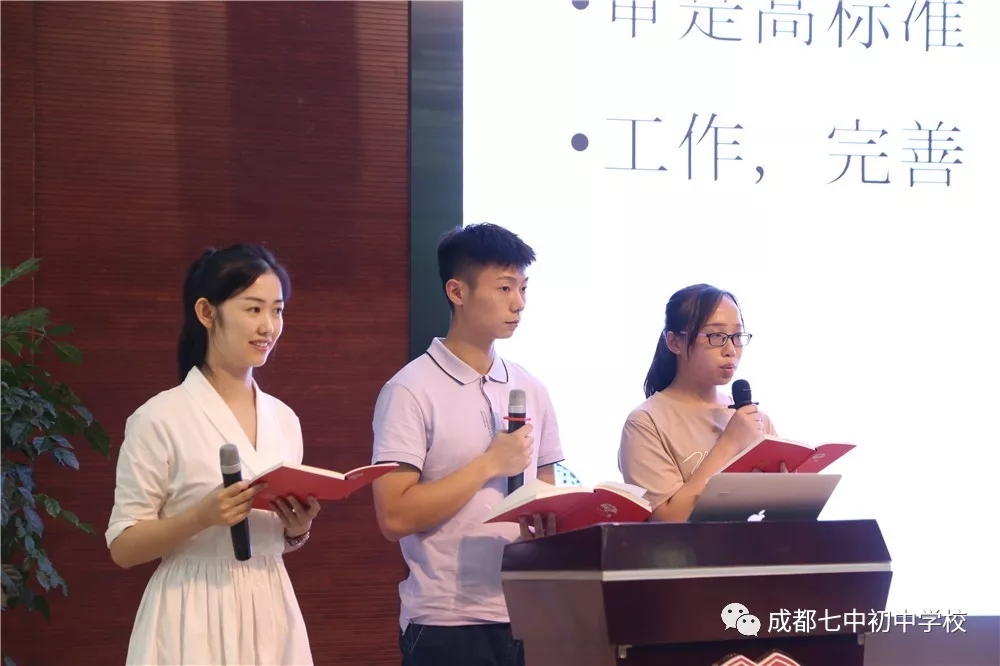 黎洪老师慷慨激昂:“我会在今后的工作中,以七初精神作为自己的信仰,不忘自己选择师范,从事教育的初心,在“审是迁善,模范群伦”的校训引领下,行为仪表、以德为范、智为泉涌、常教常新,打造最适宜学生的教育,提升人生价值,助力学校发展,引领学生成长,助推民族复兴。”