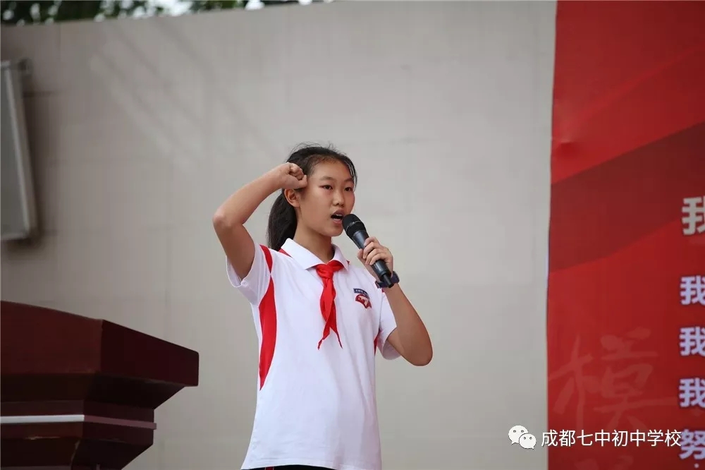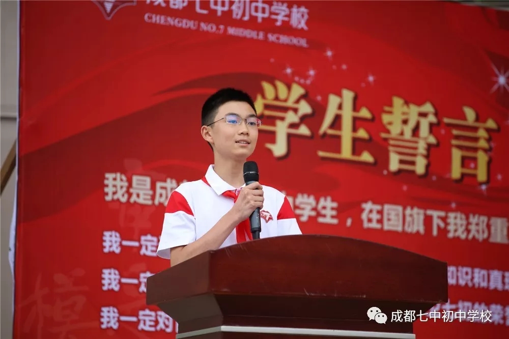 雨后新晴,国歌嘹亮。国歌激扬的音符响彻每个人的心扉。成都七中初中学校校旗也迎着秋日微风徐徐升起,孩子们纯真美好的校歌声回荡在绿草如茵的运动场上。