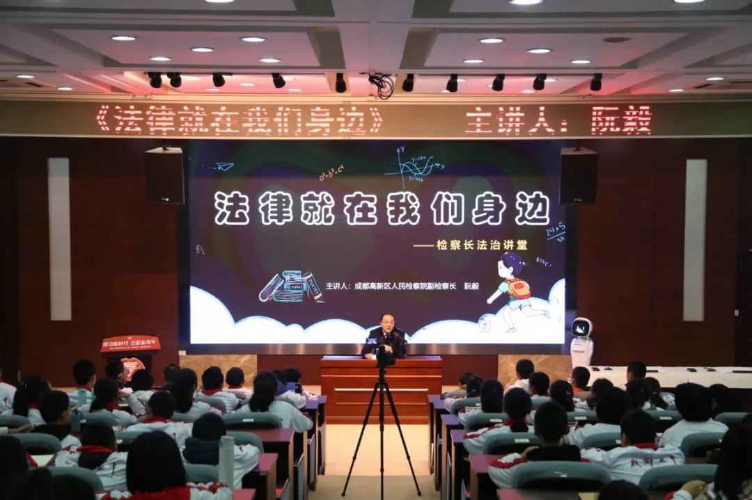 下午, 成都市高新区检察院党组成员 、副检察长阮毅检察官为我们做法制报告,讲述法律的重要性,告诉我们什么是宪法,什么是犯罪行为,同时还解答了我们很多的疑惑。听了这堂课后我们对法律有了更深入的了解,并且意识到法律离我们并不遥远,生活中处处都有法律,我们必须重视法律。