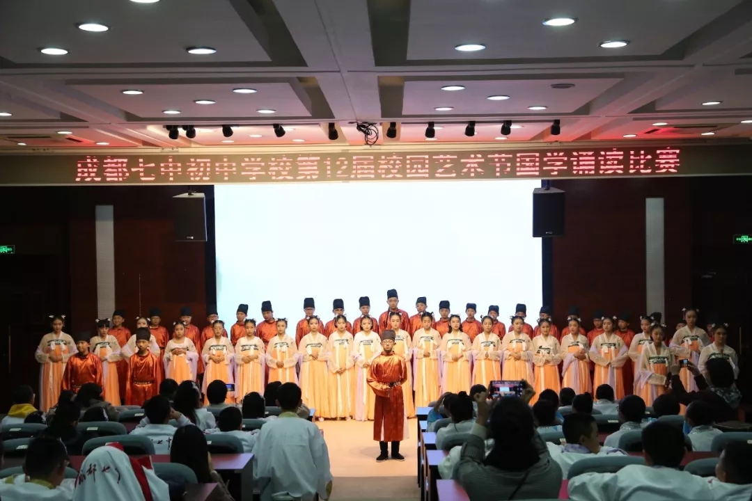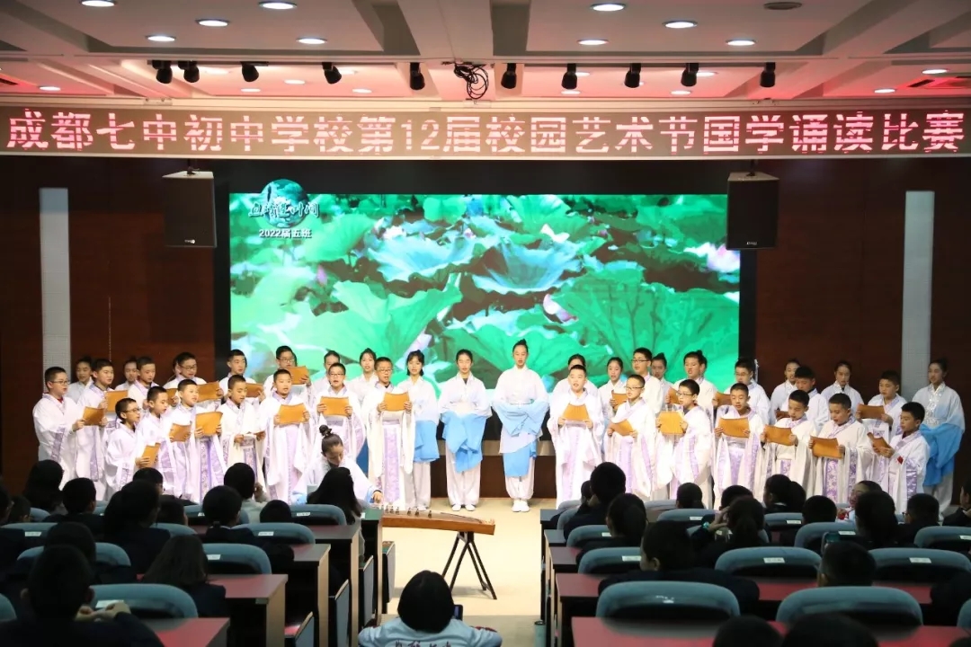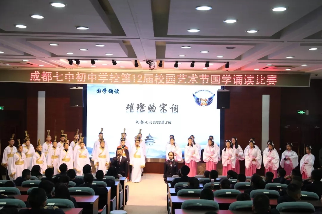 为了传承国学经典文化,我校于2019年11月18日在学术一厅举行第十二届校园艺术节国学诵读比赛。2022届的10个班积极参与了本次比赛。