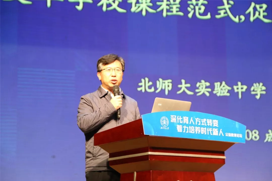 北京师范大学实验中学李晓辉校长做主题为《变革学校课程范式,促进学生全面发展》专题发言。李晓辉校长介绍了所工作学校的历史沿革和发展现状,并以该学校为例谈了基于学校发展的“问题探索”的策略和措施。