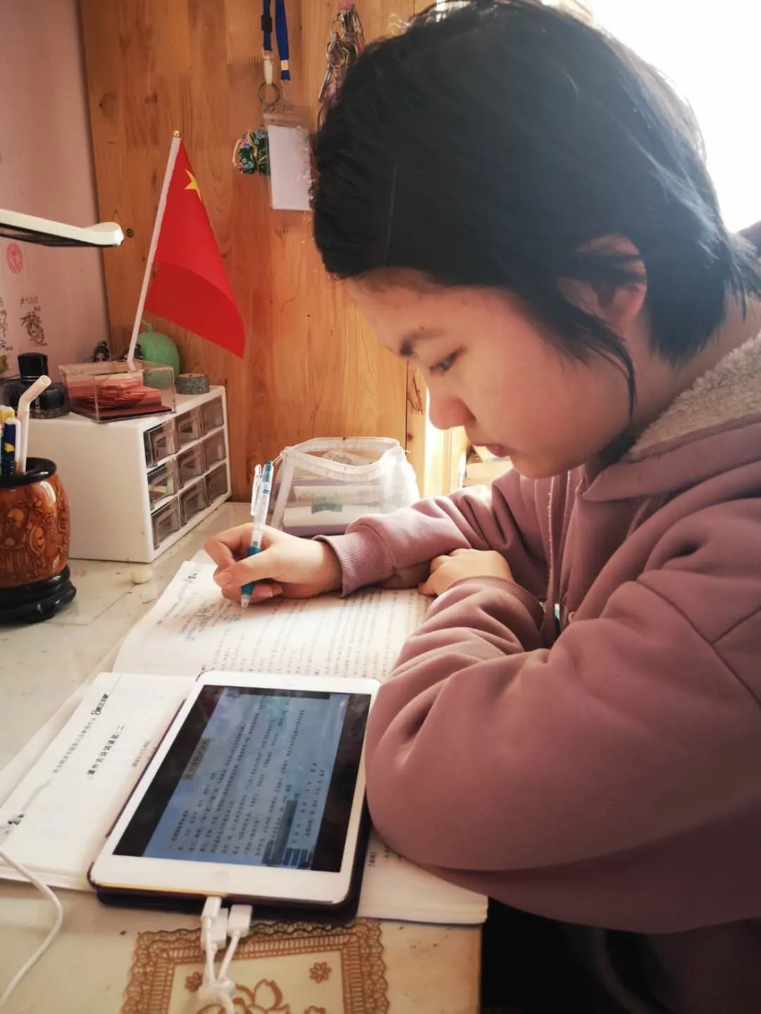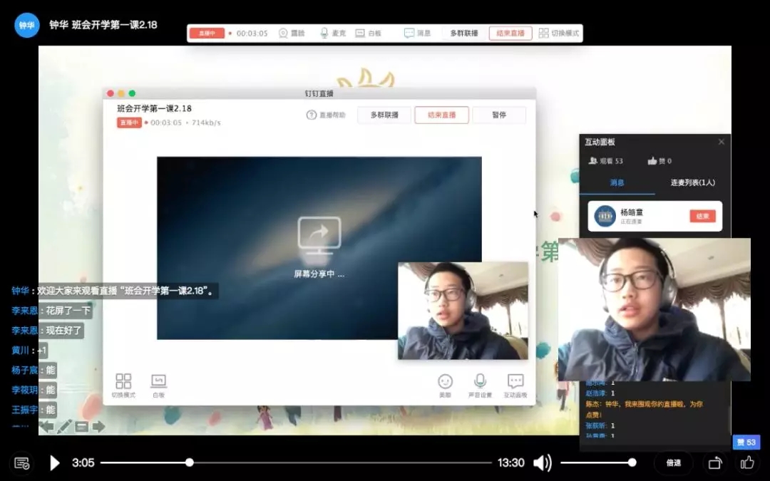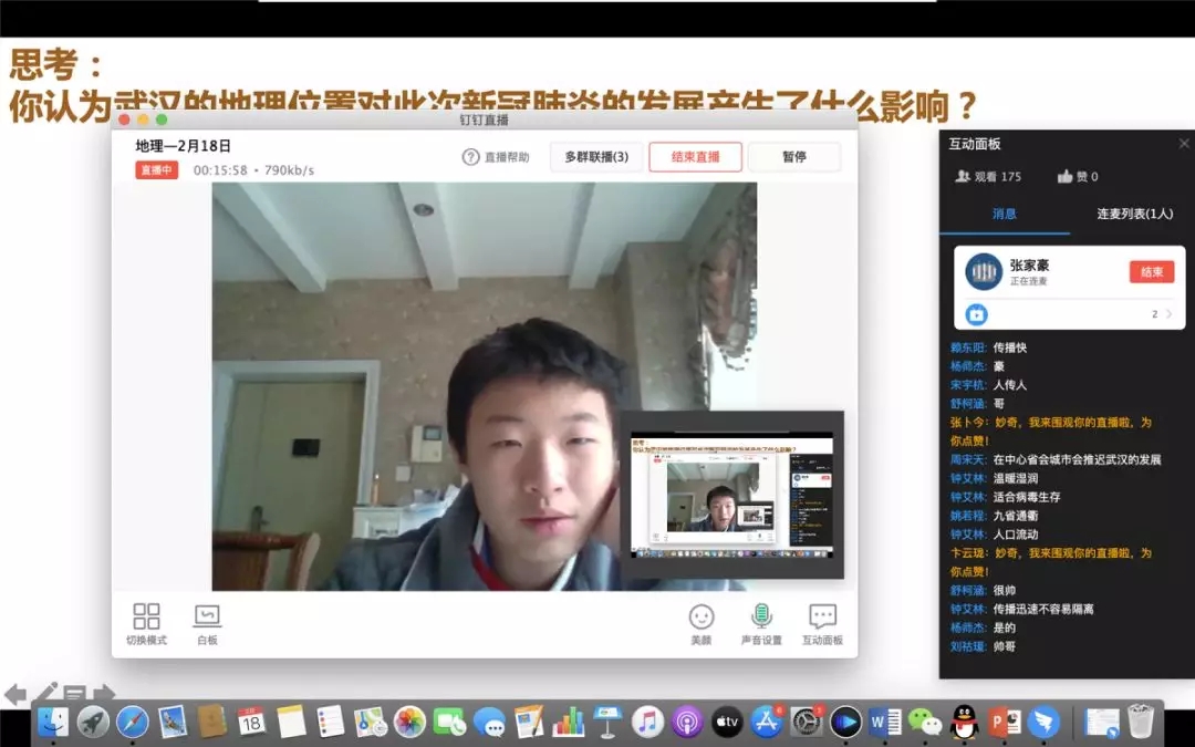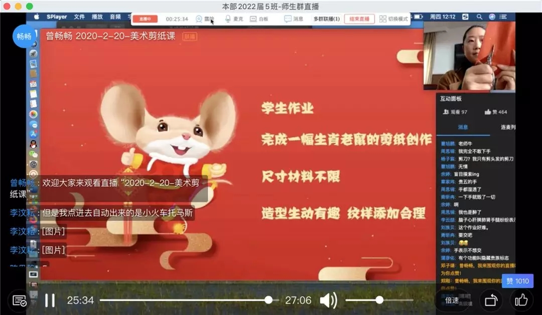 线上学习对于七初的孩子们而言,并非“初体验”,很多同学之前在七初早就接触过“全景课堂”等网络学习模式,但完全依靠网络直播学习,这还是第一次。在线课堂中,孩子们无法举手回答问题,但他们仍可以通过互动面板或现场连麦的方式积极与老师们互动,学习兴趣丝毫不减,晚间答疑时刻,更是主动询问不懂之处,一天网课结束之后,他们阅读、锻炼、练琴、做家务.....“十八般武艺样样精通”,宅出了同样精彩的自己。