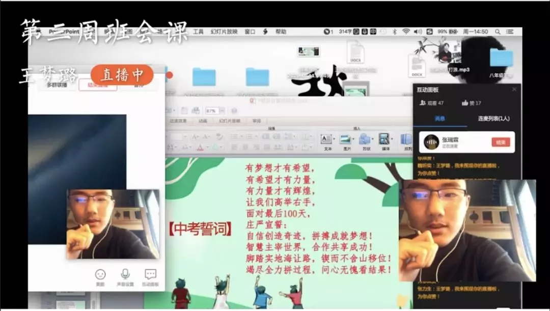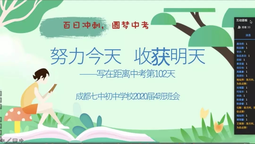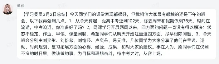 居家学习的这段时间,七初的所有德育人牢记立德树人,坚持通过电话、微信、QQ、钉钉等多种方式与学生进行个体交流。3月2日,全校各班利用班会课与学生进一步交流了近两周的学习生活情况,落实家长会达成的共识,初三年级还专门进行了网上“百日誓师”仪式,坚持把握每一次德育教育的良机,对学生进行思想引领。