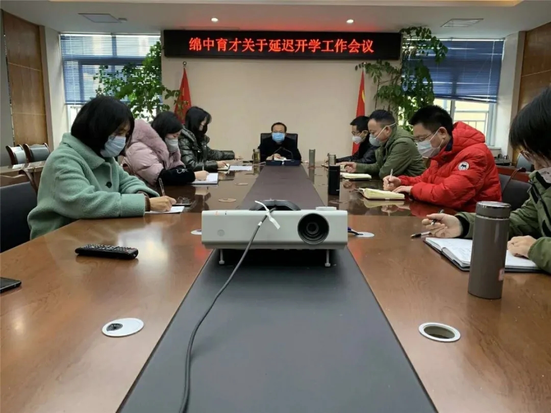▲工作室核心成员、绵阳中学育才学校孙昌均校长主持延迟开学工作会