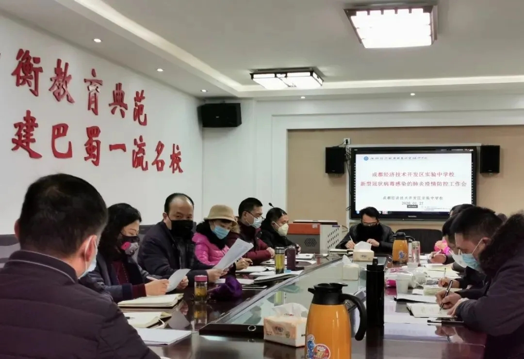 ▲工作室核心成员、成都经济技术开发区实验中学校王英副校长参加疫情防控工作行政会