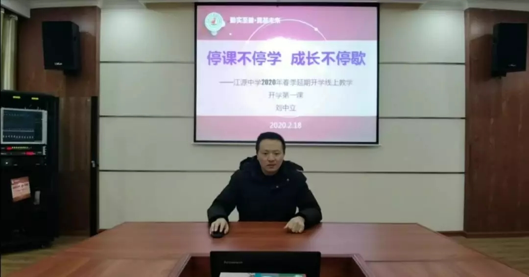 ▲工作室核心成员、崇州市江源镇中学刘中立校长网上学习开学第一课《停课不停学 成长不停歇》