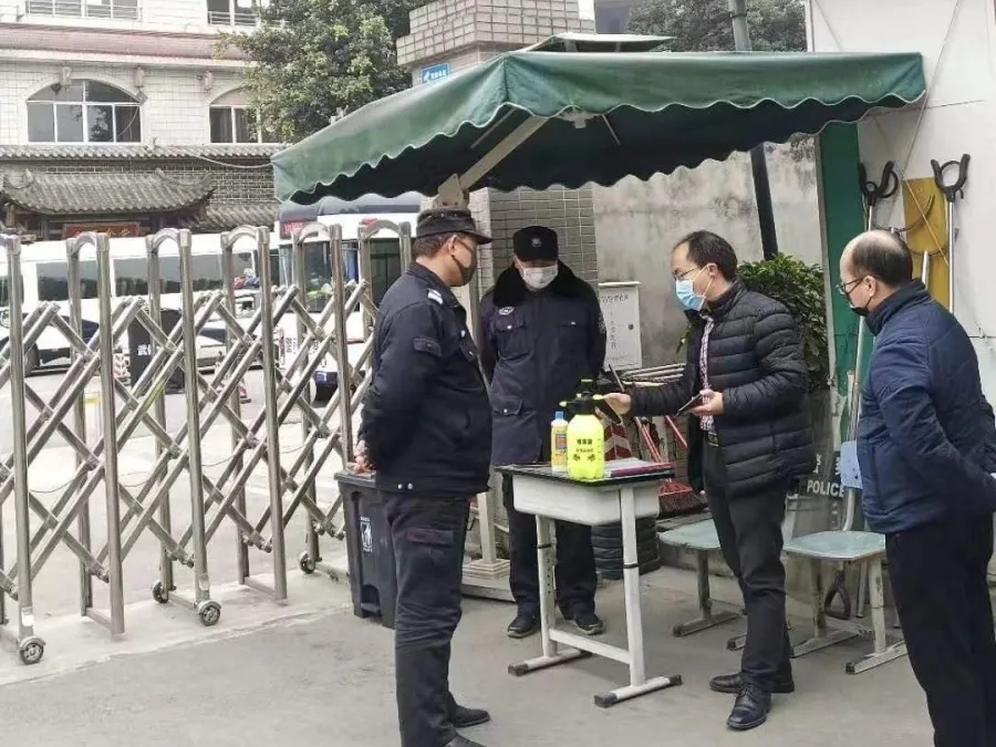 ▲工作室核心成员、眉山市东坡区苏辙中学杨勇校长督导抗疫