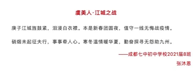 ▲成都市西北中学外国语学校7年级1班刘汶锦