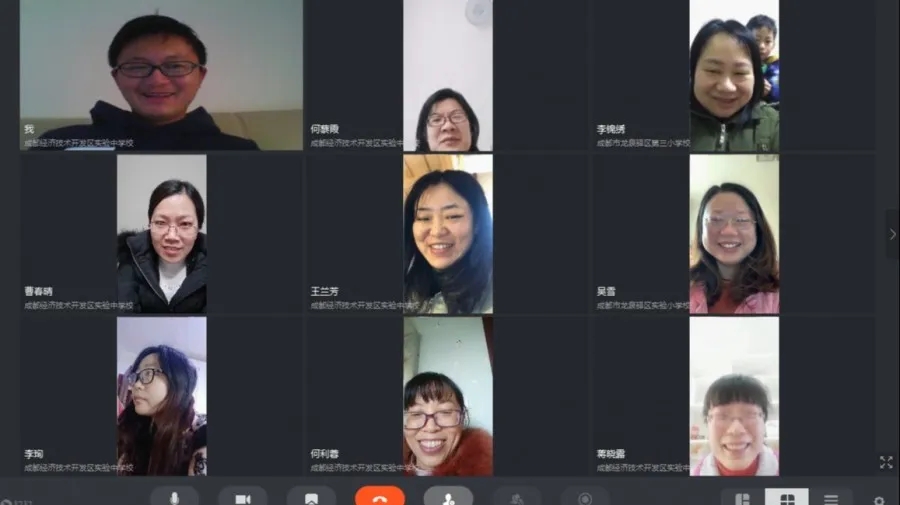 ▲工作室核心成员、成都市西北中学外国语学校王国贤校长主持在线教学筹备会