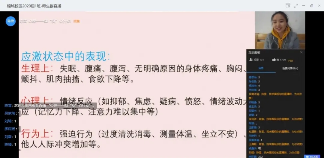 丰富在线课程体系,提升居家学习品质,“停课不停教,停课不停学”。针对在线学习、居家学习和自主学习的特点、规律,设置丰富多彩、适合学生发展的在线课程和教学活动,如校长课堂,战疫“心”行动——心理微课,战疫情诗词赏析,战疫情歌曲创作,战疫情中的美术作品创作,战疫情英语趣配音,地理眼看疫情,从生物学的角度看传染病的防控,在线指导发音训练,学生居家拓展学习,教师综合素质大赛等。
