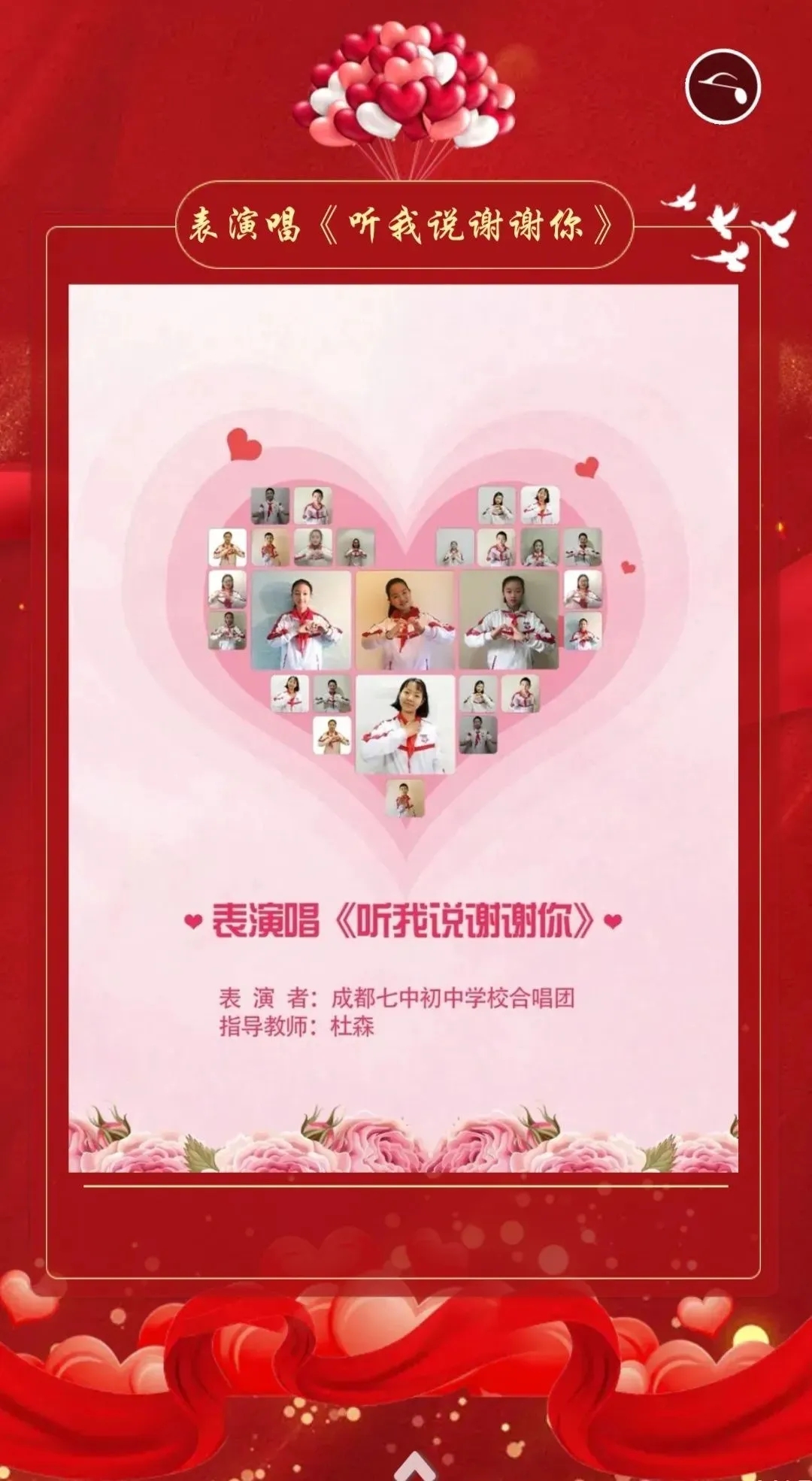 有一种关爱,从昂扬的歌声里浓浓散开,传递了战“疫”必胜的信念。成都七中初中学校音乐组的老师们通过带领同学们聆听、诵读、学唱公益最强音,在云课堂学唱抗疫公益歌曲。大家在静心体味人间大爱之余,一同感受伟大祖国带给我们的温暖与力量。同时,孩子们也在家用自己的歌声、用音乐抒发对抗疫人员的无限敬意。