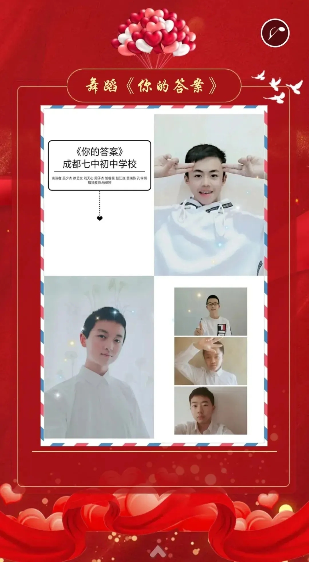 每一个音符都勾勒着我们心脏跳动的频率,每一段舞姿都描绘出我们脑海悦动的画面。2020年3月21日晚上8:00,成都七中初中学校的全体师生一起欣赏了一场特殊的“云端”音乐会。这场演出不是在音乐厅,也不是在学校操场上举行。这是孩子们第一次在家里表演,第一次戴着口罩翩翩起舞,第一次没有近在咫尺的观众和掌声,但每个人的心里却是温暖和收获的,即使隔着屏幕也能感受到彼此热烈的心跳……