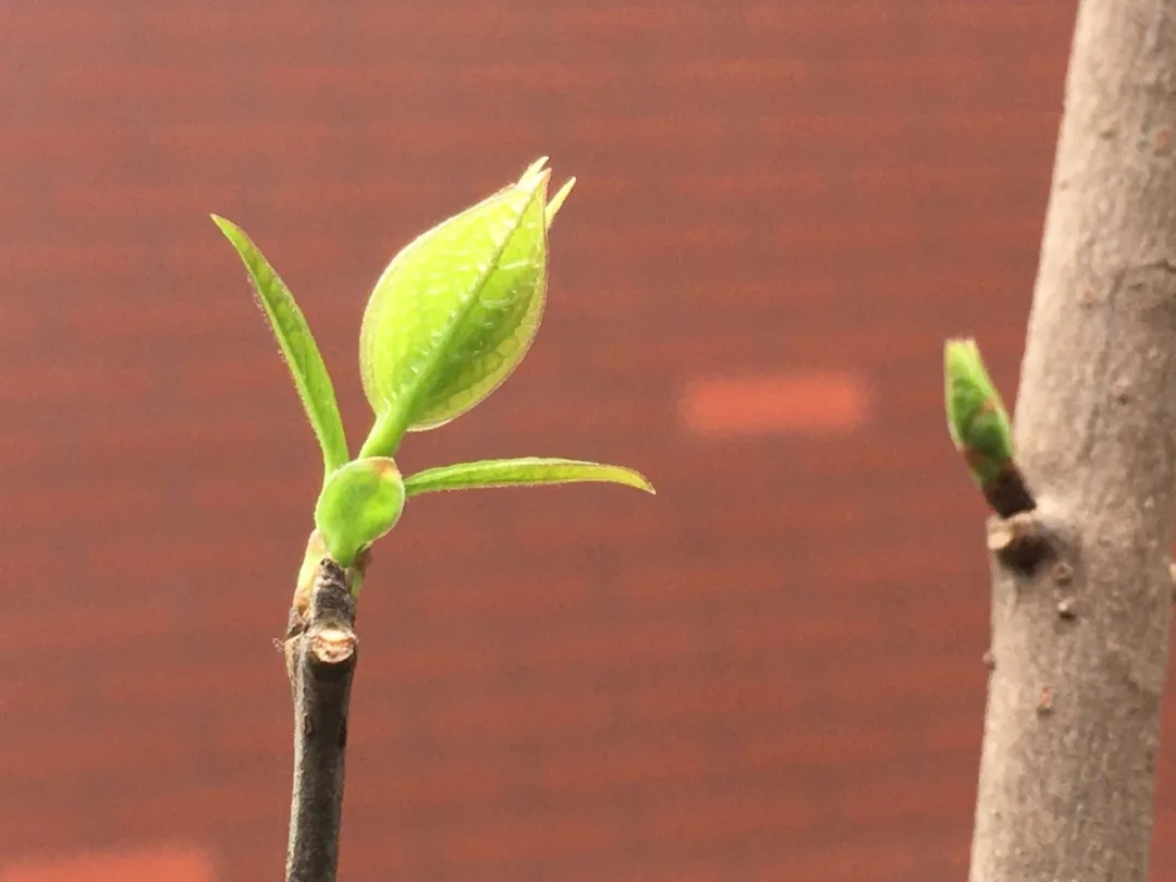 前校门的石榴树已嫩芽新绿,