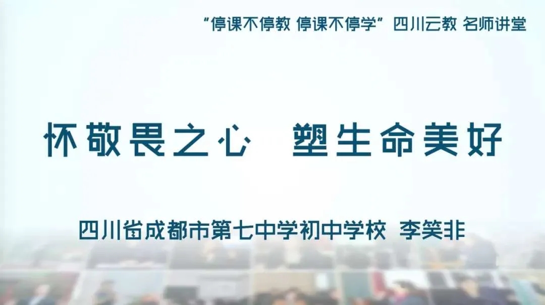 3月31日,成都七中初中学校李笑非校长受到四川省电教馆邀请,通过网络直播,在四川云教电视课堂给全省七、八年级学生带来一堂生命教育课:《怀敬畏之心,塑生命美好》。课题内容从生命与自然展开,探讨生命是什么、来自哪里、自然与人类如何和谐相处等问题;其次是关于现实与思考,谈到了人类如何在反思中前行、在灾难中进步、在历练中成长;最后是关于未来与行动,强调青少年要学习重塑生命价值、更新自然理解、完善人格理想,更要懂得厚植爱国情怀,为社会为祖国做出自己应有的贡献。