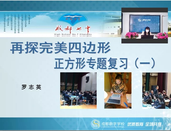 数学组罗志英老师,2月18日-4月5日期间,在成都数字学校“停课不停学”九年级在线教学数学课堂上直播课2节,课题内容《正方形》、《四边形综合》。
