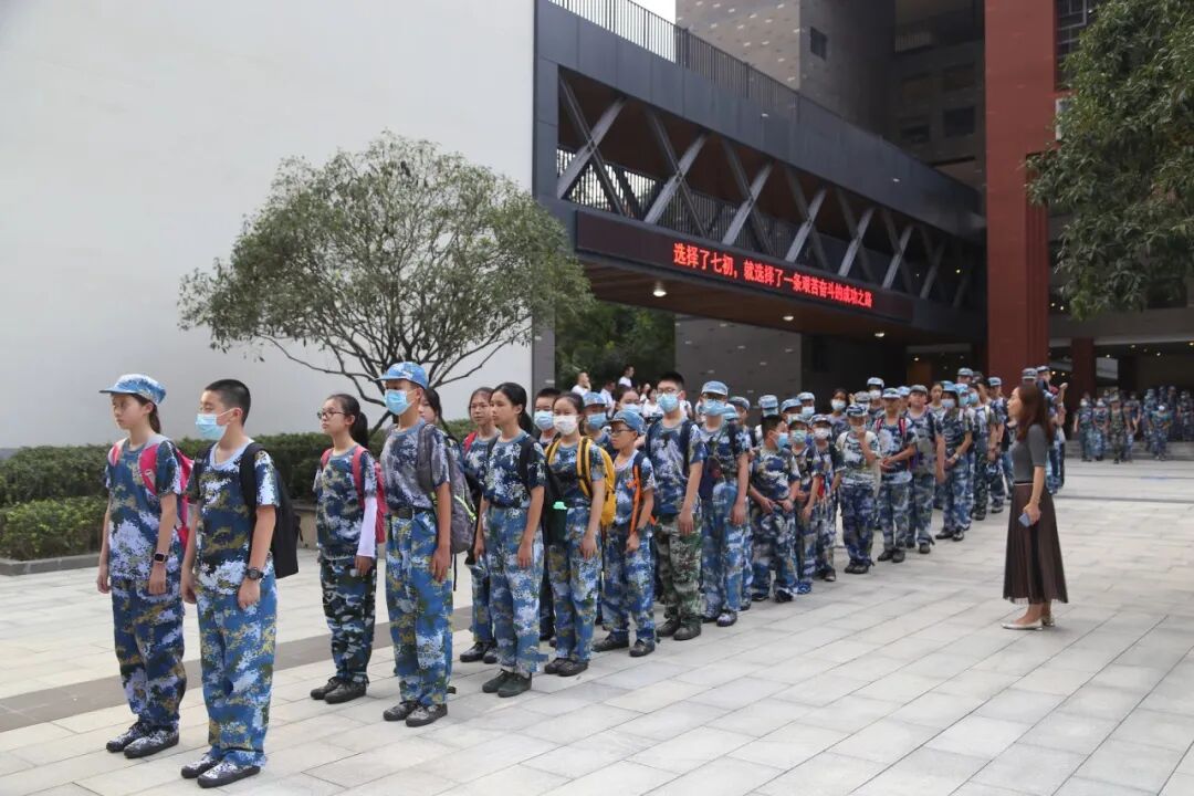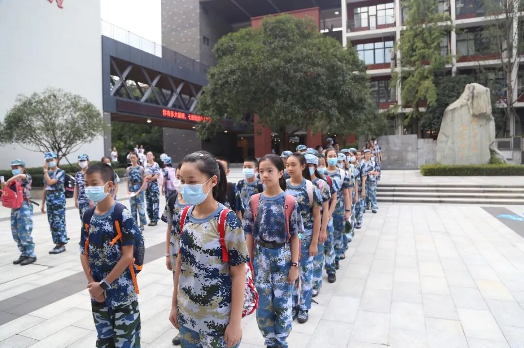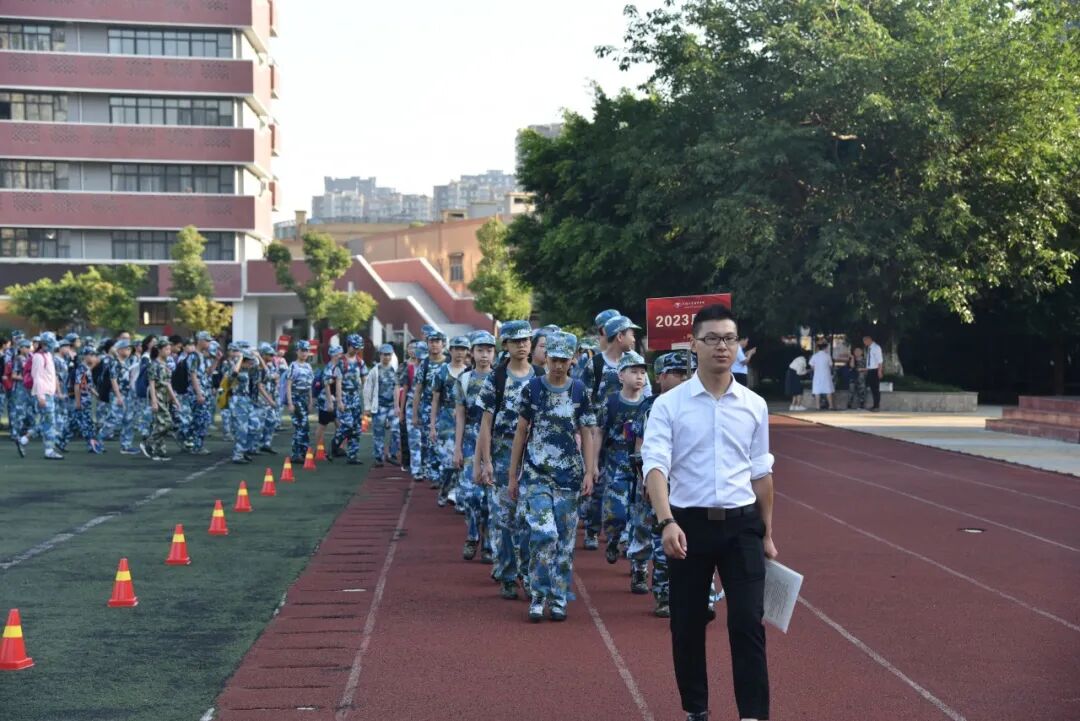 晨光熹微,携梦而行。8月27日,伴着清晨的第一缕阳光,2023届的同学们迎来了成都七中初中学校学习的第一天——入学教育暨少年军校教育活动。